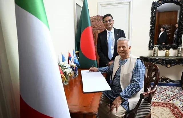 Chief Adviser Professor Muhammad Yunus visited Bangladesh House in Rome on Friday and signed visitor’s book.