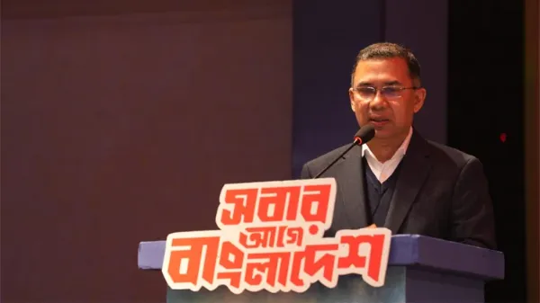 Responding to a question from a female journalist about women's safety, Tarique Rahman said safety is needed not just for women, but for everyone-both women and men. He said, “Last year, about seven thousand people died in road accidents, which is abnormal. The numbers vary from year to year. Politicians should think deeply about why such incidents are happening.”