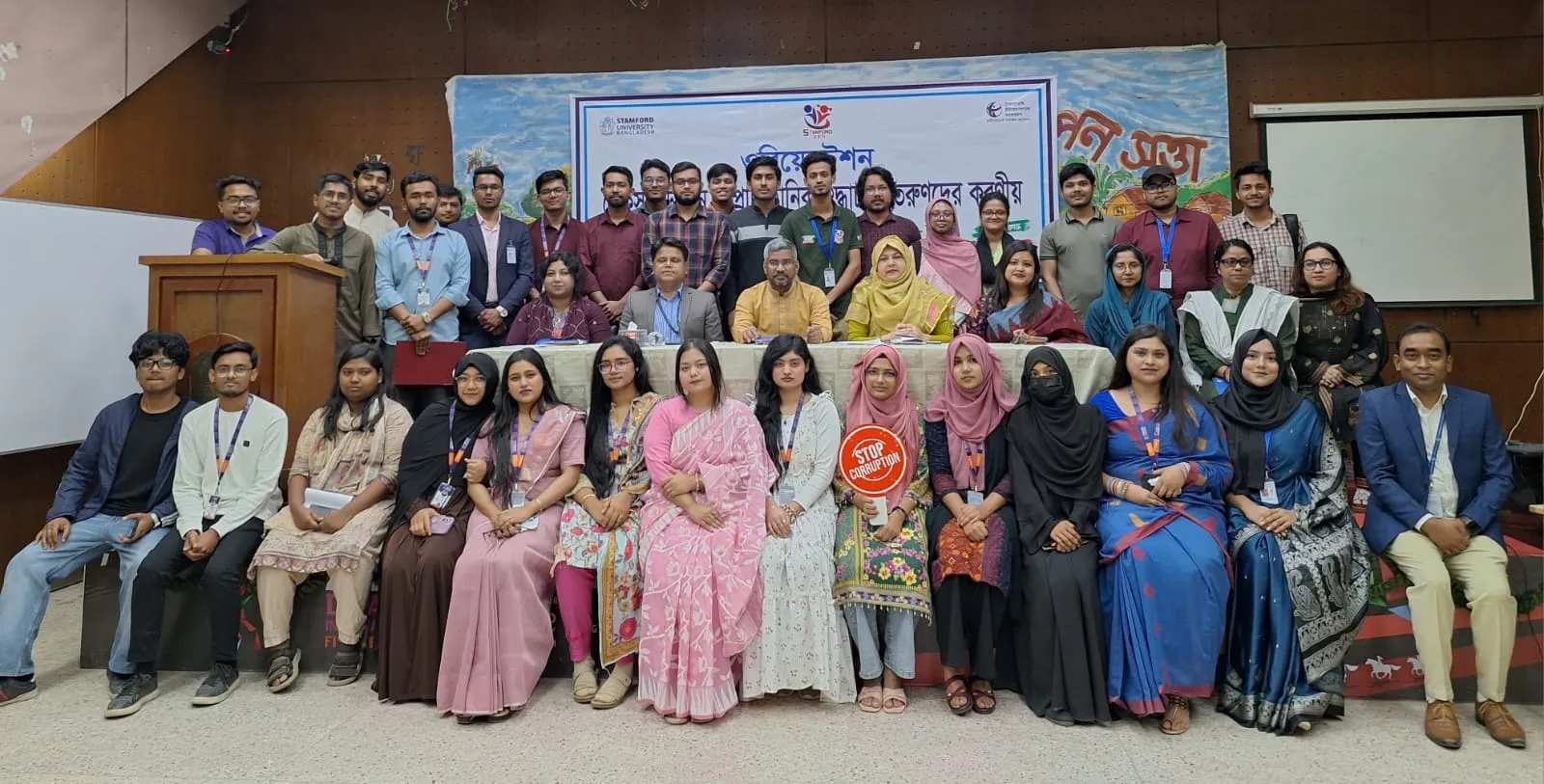 A seminar on sustainable development and institutional integrity, focusing on the role of youth, was held at Stamford University Bangladesh, organized by Youth Engagement and Support (YES). The event took place in the university auditorium, opening with a performance of Transparency International Bangladesh’s anti-corruption theme song “Jago Manush Jago.”