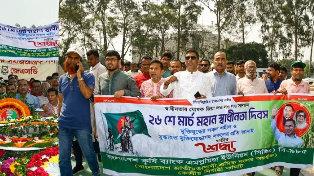On the occasion of the Great Independence Day on March 26, 2026, Bangladesh Krishi Bank Employees Union, B-985 (CBA), paid deep tribute to the martyrs of the nation with due respect and solemnity. As part of the observance, floral wreaths were first laid at the National Martyrs’